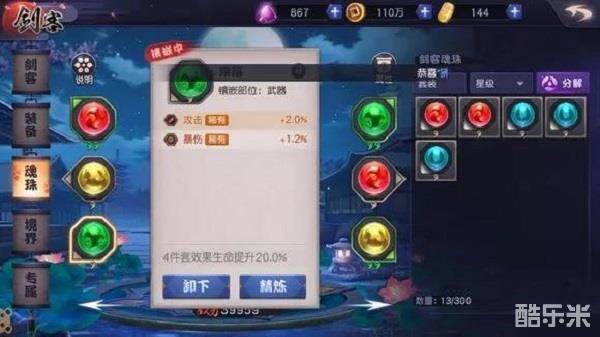 在给剑客搭配好魂珠后,接下来就可以进行魂珠精炼了。
