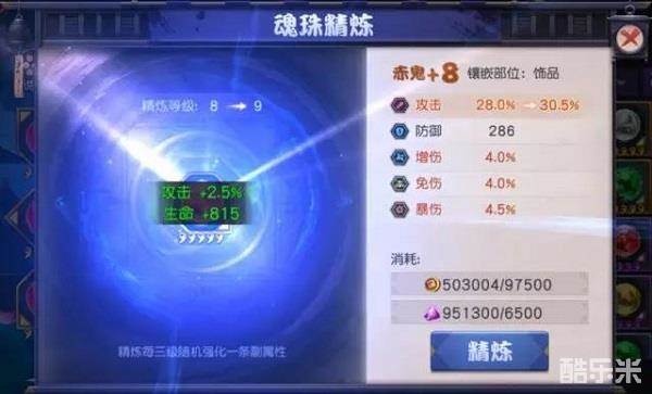 魂珠在每次精炼时都会提升魂珠的主属性,尤其在每三级都会随机强化或出现一条副属性;武士大人们在精炼时可要注意这点。