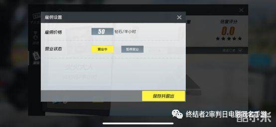 点击设置按钮,可设置雇佣的金额,10-200钻/半小时。