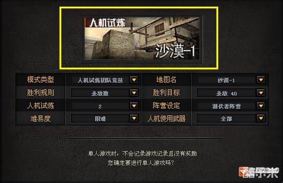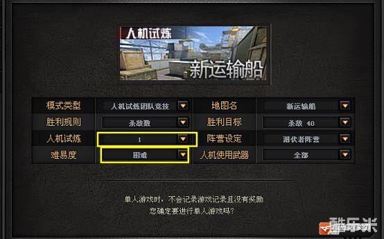 对于人机,小编这里建议大家起步的时候就跳过普通人机阶段,直接从困难开始,而人数只需要设定一个人机就可以。这里直接选择困难人机是因为相对普通人机来说,电脑人物的走位还算可以,枪法也相对较好,甚至比我们还要准一些,这就相当于给我们提供了一个完美的1V1伙伴,这样有了一个目标之后接下来练起来才特别有动力。