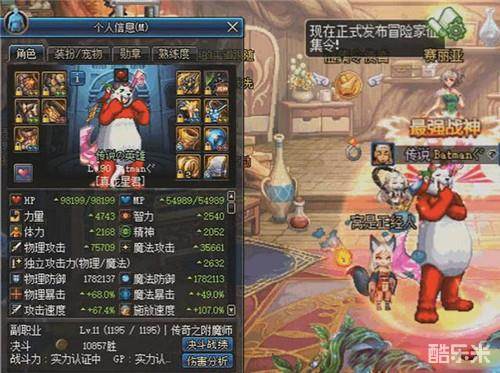 还有一个是超大陆驱魔,人称“B叔”,超大陆五件都是增幅13红字力量,武器是14红字圣耀战斧,站街力量4743,物攻破7W5,这“B叔”的面板虽然没有第一个板甲驱魔强势,但是也不容小觑,在国服都比较的少见。