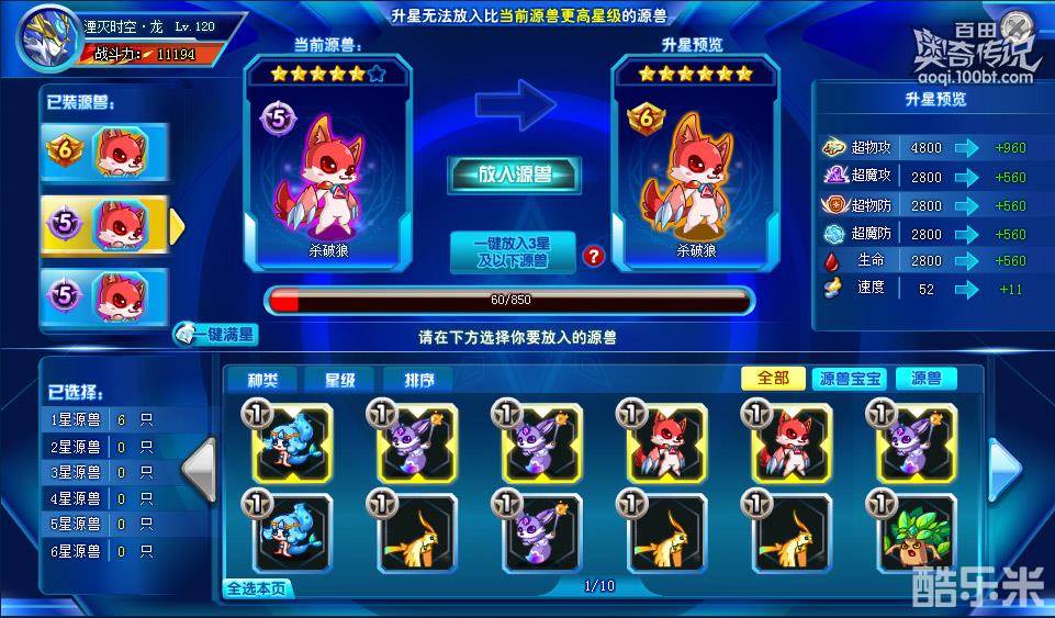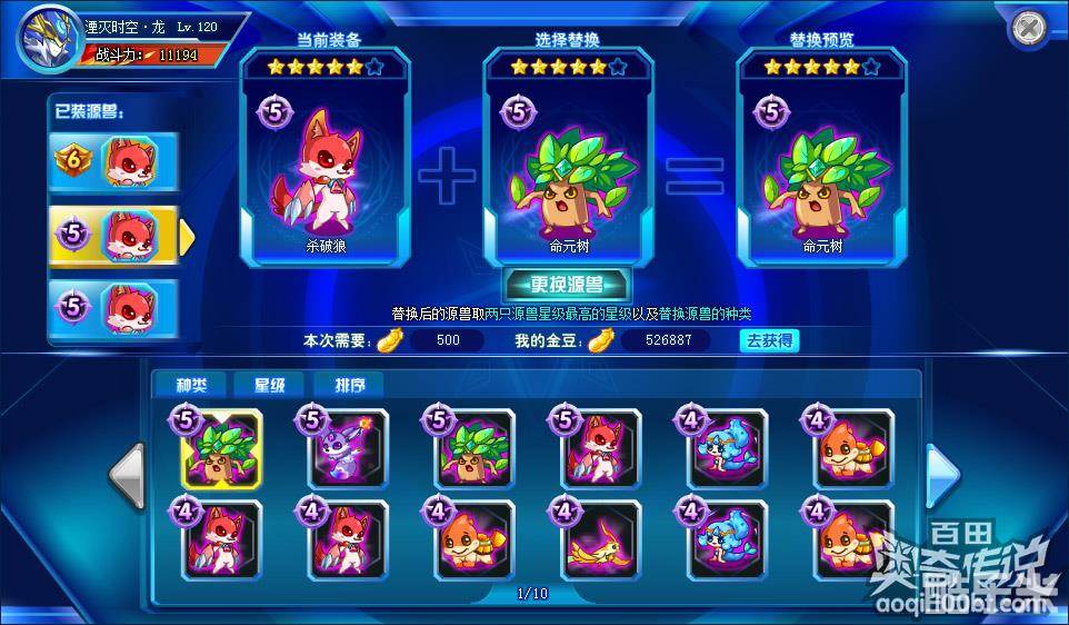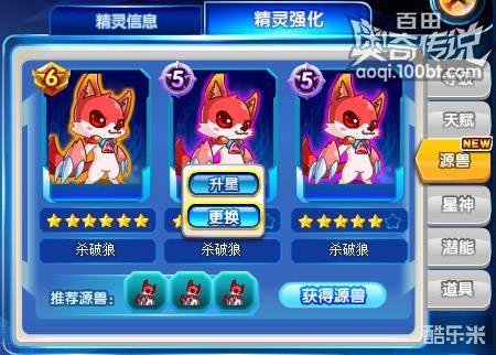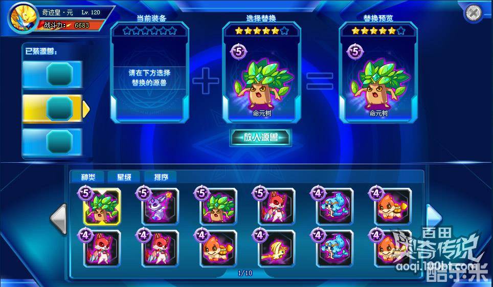 如已经装备了源兽,可以替换或者升星,源兽最高星等为6星。