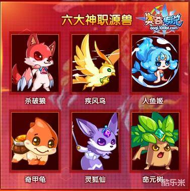 奥奇传说六大神职源兽:杀破狼、疾风鸟、人鱼姬、奇甲龟、灵狐仙、命元树。