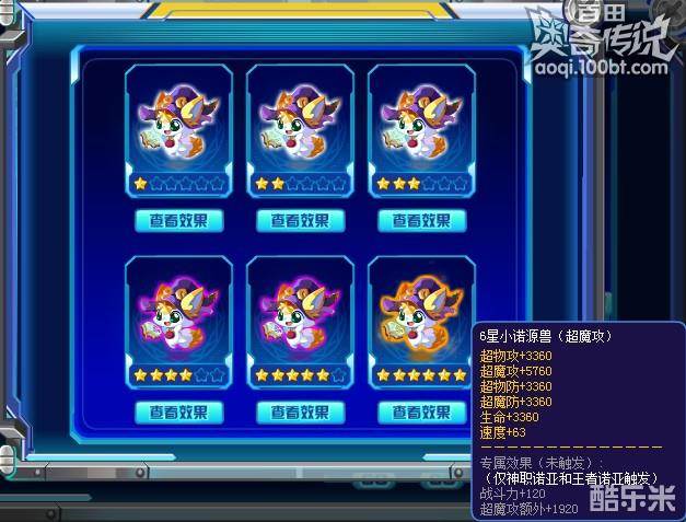 仅神职诺亚和王者诺亚触发;6星效果:每只战斗力+120,超魔攻+1920。