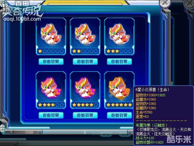 仅神职龙炎和神职神火天炎触发;6星效果:每只战斗力+120,超物攻+1920