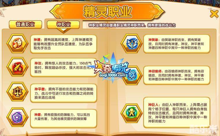 奥奇传说精灵职业分为普通职业和神职业。奥奇拥有10大普通职业,了解各个职业特点,根君职业特点搭配阵型,实力更强!神职业精灵由普通职业精灵神职而来,拥有更强的战斗力。