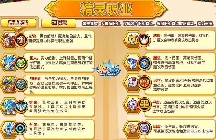 奥奇拥有10大普通职业,了解各个职业特点,根君职业特点搭配阵型,实力更强!
