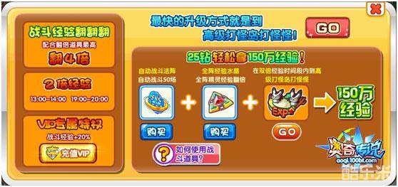 配合使用翻倍道具,最高4倍经验。(在双倍经验时间使用)