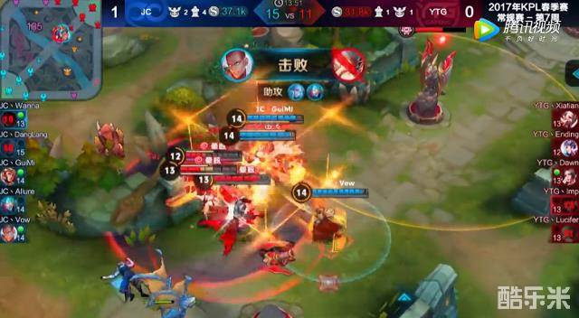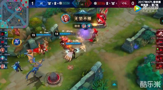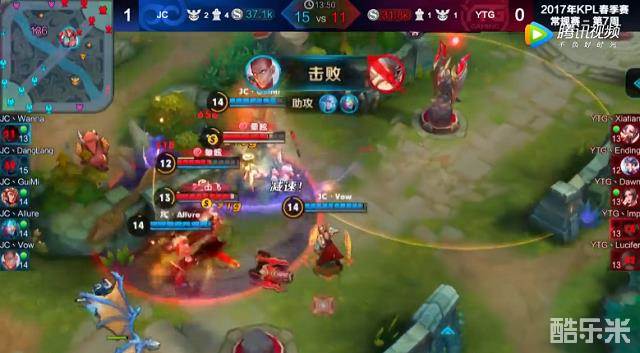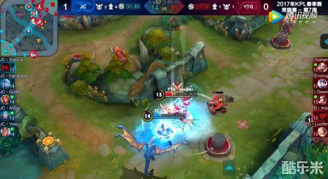 最后,经历过生死劫的YTG仅剩曹操一人,利用自己一技能三段位移极限逃生的他,不幸被后方JC杨戬放出的哮天犬标记,成为塔下亡魂,团灭YTG的JC势不可挡一路中推摘掉水晶。