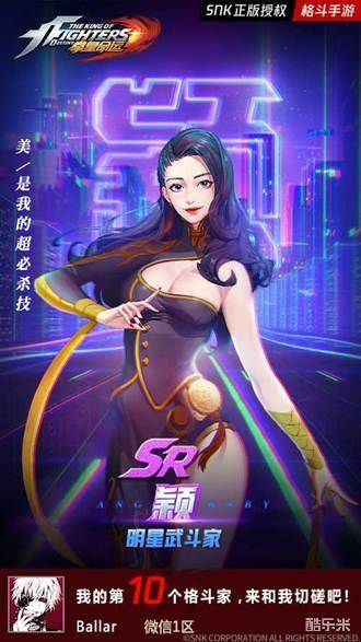 从游戏上线的一系列营销活动来看,Angelababy不负众望地发挥了其格斗女神的战斗力和创造力:为了让这位“格斗女神”更贴近玩家,《拳皇命运》手游在游戏内为Angelababy量身打造了颖这个角色,而baby更是亲自参与设计了该角色并为之献声,通过高度契合的角色塑造和个性演绎了从三次元向二次元的跨界。