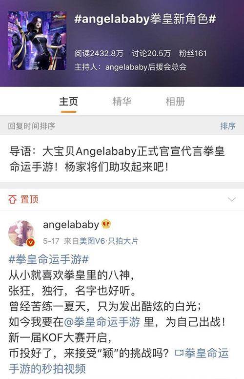 ▲baby微博发声,宣布代言《拳皇命运》手游