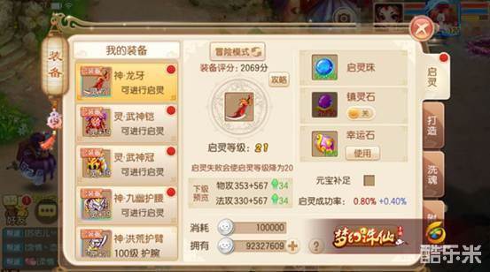 接着就来聊聊启灵:作为游戏中的一种强化手段,我们不可否认启灵能带来高额的属性加成,但启灵具有成功率的(随着启灵等级的提升成功率降幅明显),因此到了后期启灵收益可以说微乎其微(明显不如其它强化玩法)!个人觉得虽然现在武器的启灵等级上限已提至23,但大伙将武器启灵至21即可,因为后两级的启灵耗资用于其它强化渠道可带来更多的加成收益。