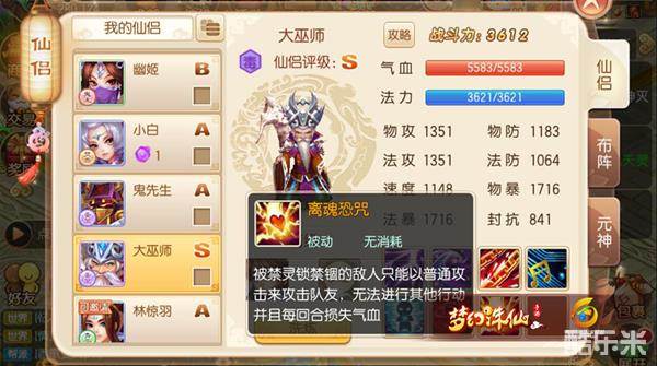 除了上述的这些,大巫师的情缘也非常的给力。像在与“法系一哥”兽神同时出战时,能够为大巫师增加封印的成功率;而在与鬼厉同时出战时,则能够增加大巫师的百分比生命上限,让他在战斗中的生存能力更强。