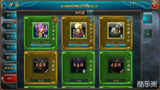 《御龙在天手游》作为一款国战手游,深受广大玩家喜爱。随着各位玩家战斗力的不断提升,对于人物的全方位打造也越来越看重。提升战力不仅可以从装备、技能、坐骑等方面入手,还可以打造神兵,而许多玩家对神兵的获得也是了解的相当少,今天小编就带领大家了解一下关于神兵的那些事。