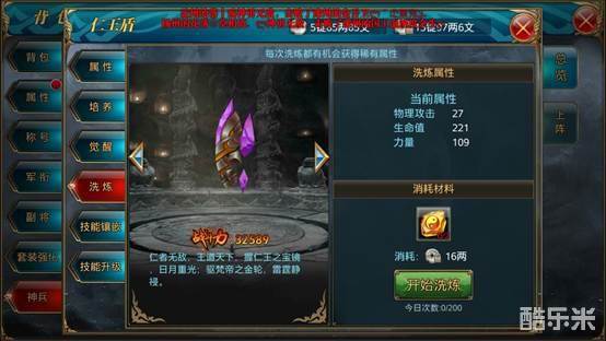 每种神兵的初始属性都是相同的,但是可以通过洗练获得更高的属性,平时多余的神兵碎片都可以用来拆解,可以获得洗练石,家族试炼有送神兵碎片,这是拆解获得洗练石的主要途径之一。