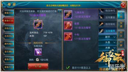 2.更换过的新装备可在【炼鼎】-【装备合成】通过使用【紫色/橙色晶石】和【紫色/橙色精铁】来提升装备品质;