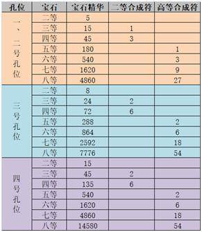 3.各等级宝石打造所需材料如下(高等宝石合成符可在【商城】-【神兵宝石】内购买):