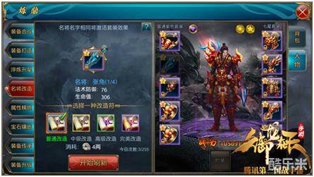 1.名将属性可在【炼鼎】-【名将改造】内通过消耗道具【名将改造符】来刷新装备的名将属性,【名将改造符】的品质越高,越容易刷新出高品质的名将属性;