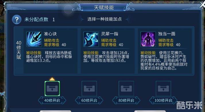 侠客的两个技能非常重要,就是雄心决和古道热肠,加法术攻击和物理攻击的,能点满就点满。