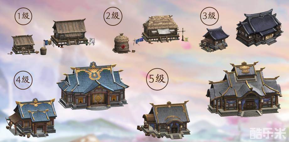 房屋外观变化如上,更换房屋外观需点击装修,下拉至房屋选项进行外观更换,正屋6级后可以更换第一次外观。