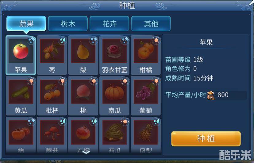 TIPS:这边需要注意的是一定要在成熟后及时去摘取自己的种植物,不然很容易被别的玩家偷菜或者蔬果自己枯萎!