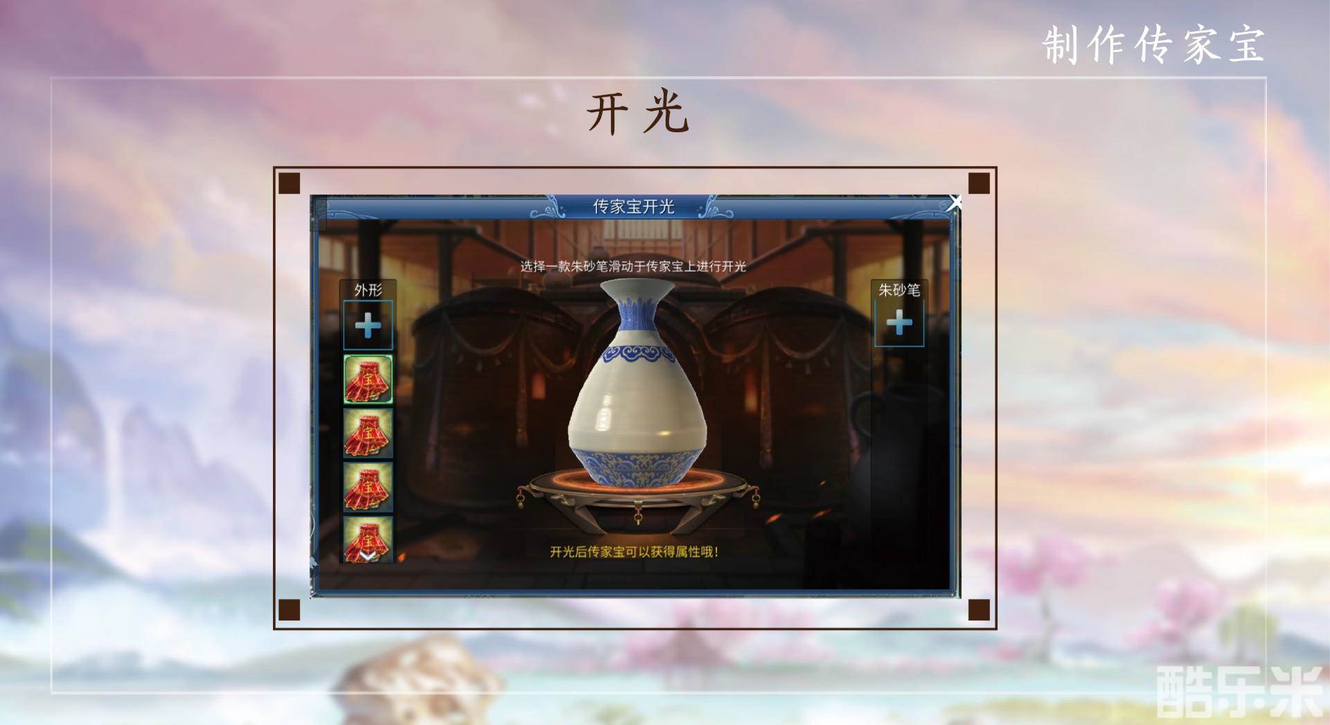 且传家宝的星级要大于朱砂笔的星级才可以进行开光。