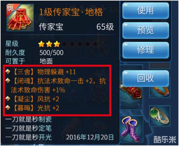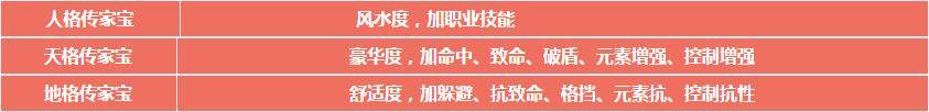 传家宝相对于玩家额外的装备。但玩家不是直接拥有装备上的能力,而是通过在家中向灶王爷祈愿的方式随机获得装备上的能力,BUFF加成。
