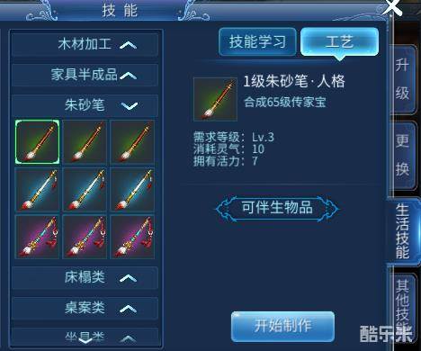 朱砂笔需要通过工艺技能制作,传家宝和朱砂笔都是通过灵气进行制作,灵气是和气数相关,气数越高,灵气恢复速度也是越快的。