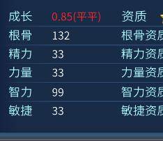 成长分数: 0.85(资质平平)---3.0(超凡脱俗)