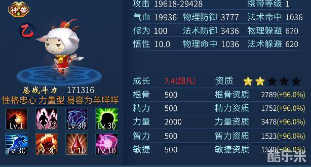 这个数据,才是洗灵兽应该关注的,成长,决定一个灵兽的好坏,所以,洗灵兽的时候,看成长就可以。成长在2.1以上,就会是超凡了,1.6以上应该是上上,一般达到上就可以先带着了。