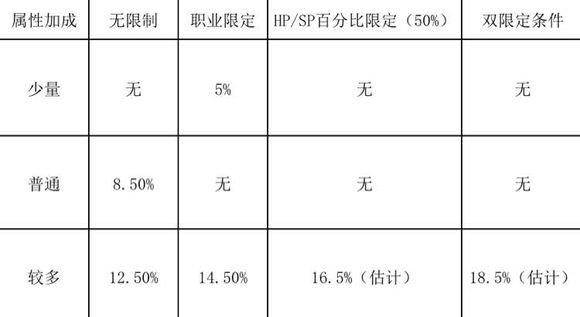 由于武器一般不增加SP,建筑对SP的增加幅度也比较有限(除法师外),因此随从对SP的加成是最接近被动技能的,基本上可以等同。一般来说,只有当随从可以引起SP回复升档时,我们才会装备增加SP的随从。拳剑弓法的SP回复档次如下图,规律是最大SP的3%(取整),上限是7。枪在此基础上+1,斧+2。