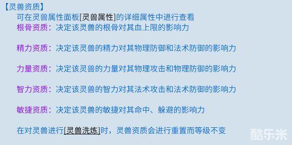 大致如上所述,资质可以通过灵兽洗练提升,同时也可以通过后期的修为悟性再次提升。