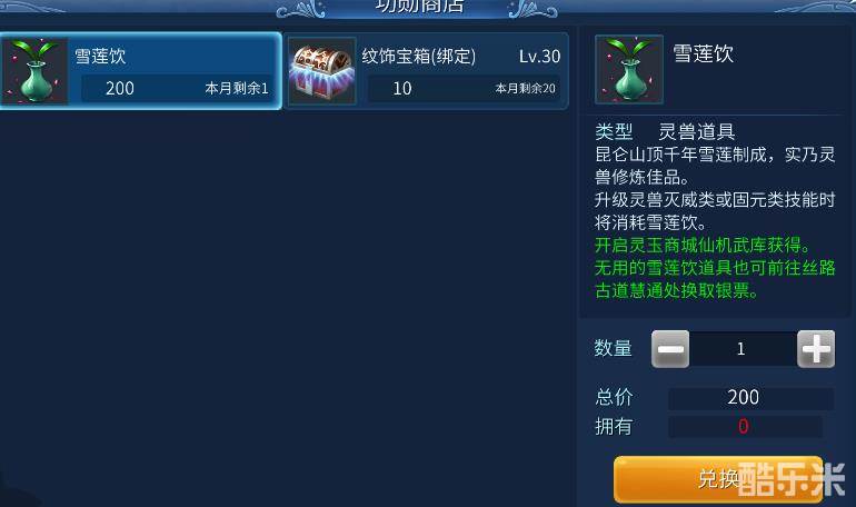 固元灭威类技能需要雪莲饮进行升级,平民玩家可以通过帮会功勋在帮会师爷处每月兑换1个
