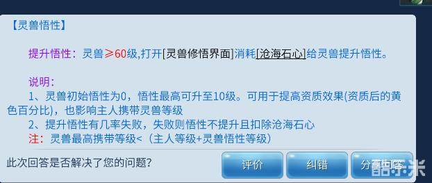 悟性不仅可以提升灵兽的资质,也可以提高等级上限