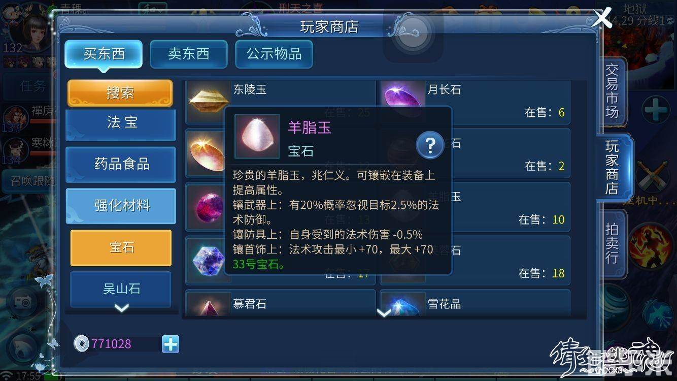 羊脂玉:镶嵌着首饰上增加法术最小攻击最大攻击