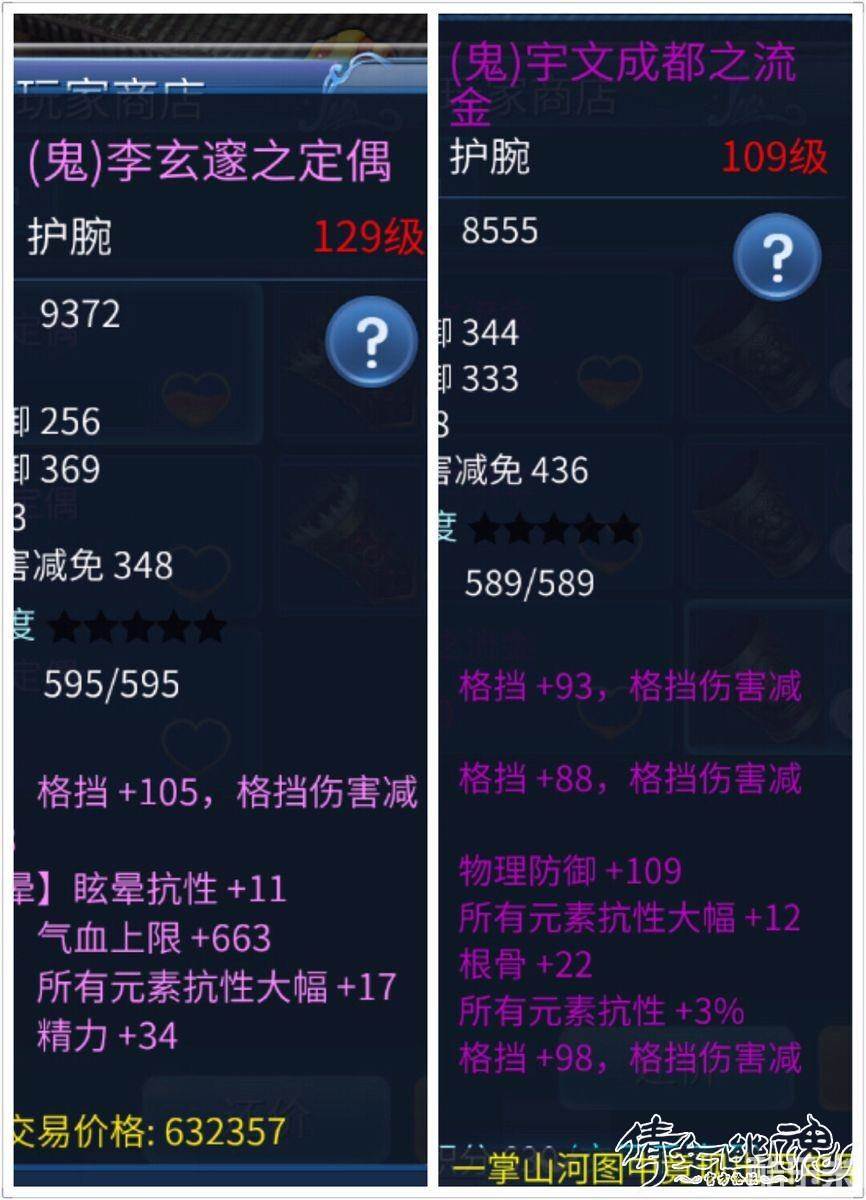 鬼装护腕:对于鬼装护腕我对比了基本都是加格挡,和元素抗性,其实吧看过这么多异人,老实说我觉得这种鬼装护腕不是异人需要的,需要元素抗性的使用者多