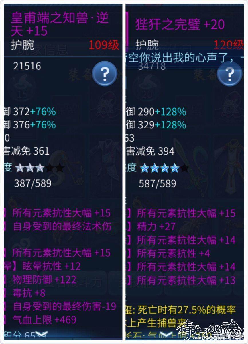 紫装护腕:与红装护腕一样,很多基本都是固定元素抗性,能洗出更多的元素