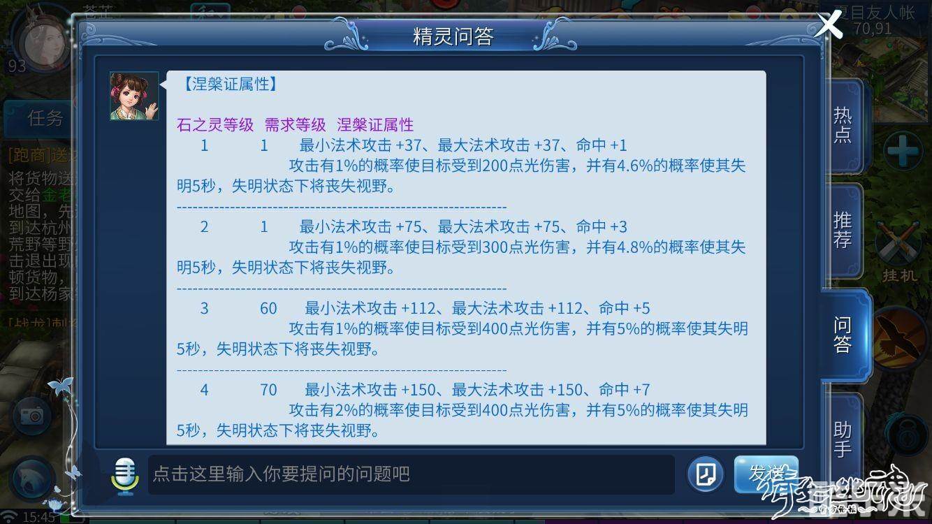 涅槃证(4孔)夜明珠+透辉石+猫眼石+橄榄石(增加最大和最小法攻,命中,有概率使目标受到光伤害,并概率使其失明)
