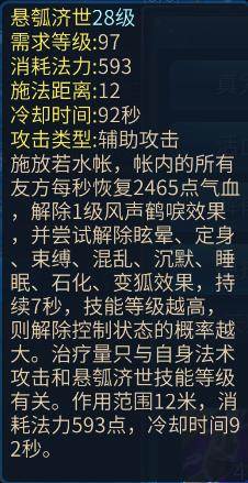 2.只有同级及以上的护心或者悬壶才能解的控制:魅者的声声慢、迷仙引,刀客的眩晕陷阱,异人的石化(只有同级及以上的悬壶可解)