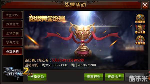 奖杯随身,荣耀永存,《全民奇迹MU》第一届战盟联赛最终战即将火爆开打.爱热血、爱激情、爱奇迹的勇士们,5月13日晚8点半,让我们相约观战,不见不散!