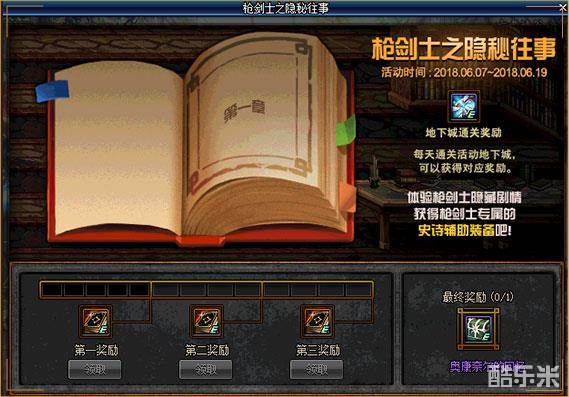 | 奥康奈尔的礼物 | 开启后,可以获得1个蕴含回忆的怀表、2张升级券(Lv50~85)和1个木质棒球棒装扮礼盒。只有枪剑士角色才能在6月19日更新后开启。 |