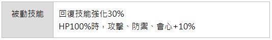 随从技能:主卡的HP100%时,攻击力和防御力较多提升