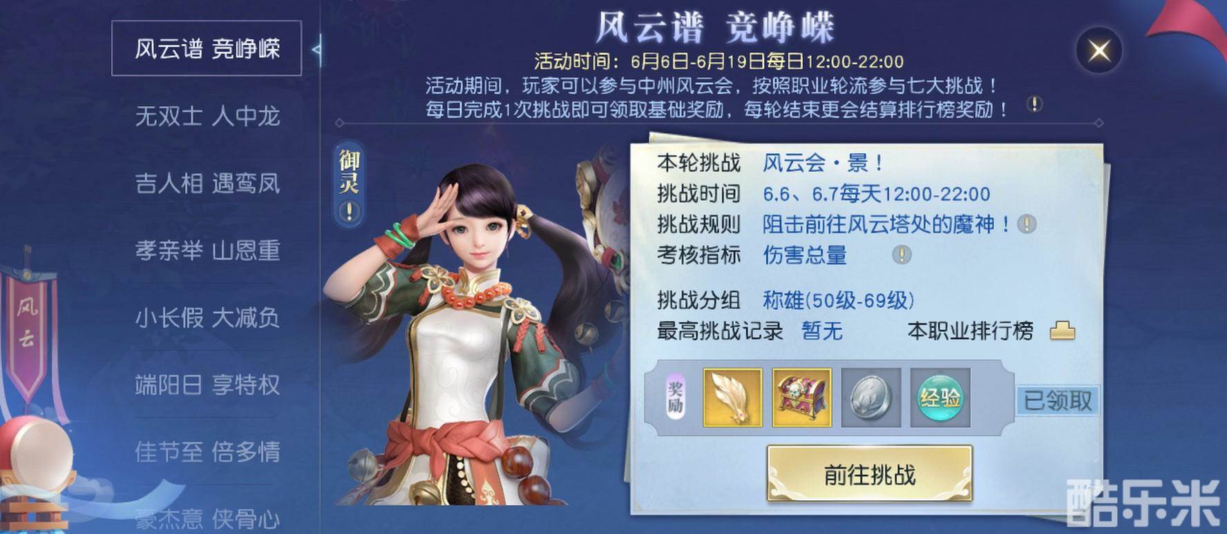 《镇魔曲》 “中州风云会”系列活动里,天命者们能根据职业参与到“风云谱 竞峥嵘”活动中,完成7种不同类型的挑战、争夺“中州风云榜”魁首!基础奖励与排行奖励同步放送,海量福利领回家!