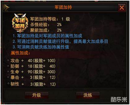 开启后玩家可通过此系统进行帮派的创建和申请,当玩家加入帮派后,可以通过帮派试炼挑战来获得大量经验银两等奖励,也可领取帮派每日宝箱,和贡献宝箱。加入帮派后的玩家每日可以通过帮派来参加一些活动,也可通过活动邀请来寻找帮派玩家一起与你组队战斗。 军团信息标签页中军团成员可点击每日签到获取签到礼包。军团满足升级条件后,团长可对军团进行升级军团成员可捐献军团资源换取贡献军团成员可点击军团加持徽章按钮,进行洗练、升级军团加持属性,如图1-3