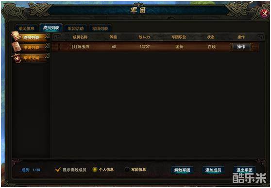 军团列表标签页中,如图1-4可查询军团成员列表可查询军团申请列表可查询军团见闻列表