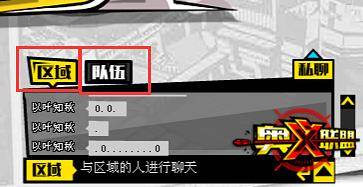 可以点击左上角的按钮切换聊天区域,和陌生人或者队伍里的人聊天。