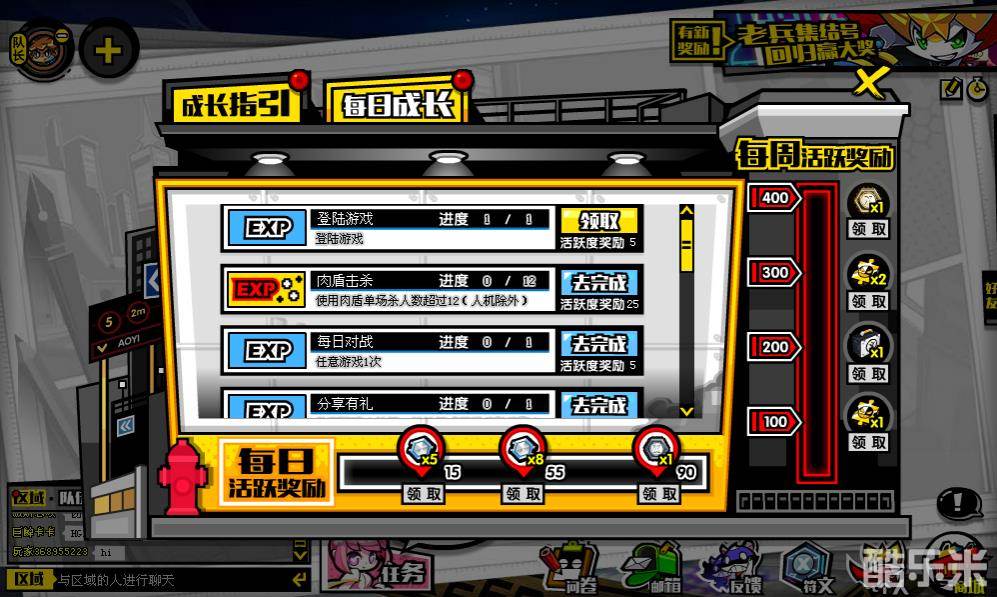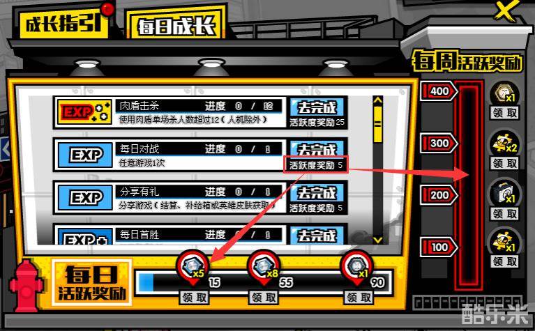 在【每日】成长中,我们可以看到每天都有各种小任务,完成小任务会获得活跃度的奖励!