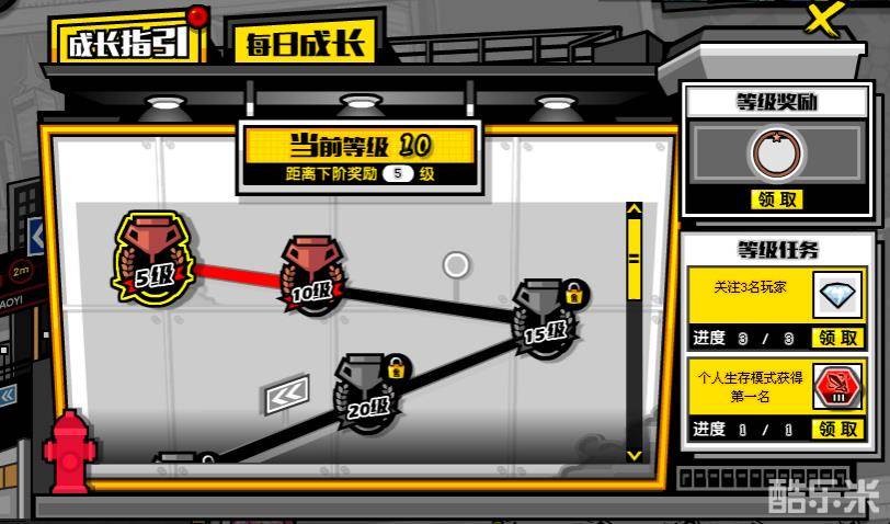 而【成长指引】则是按玩家当前等级来划分,每5个等级都可以完一个阶段的任务获得奖励!