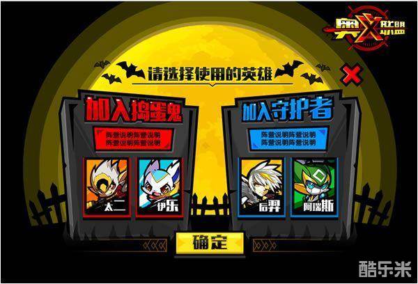 进入模式时,需要先选择英雄,选择后进入对应阵营:选择后羿、阿瑞斯进入守护者阵营;选择太二、伊乐进入捣蛋鬼阵营。