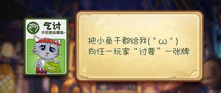 在你的回合打出“乞讨”,并指定任一玩家,被指定玩家必须从自己的手牌中挑选一张卡牌交给你。